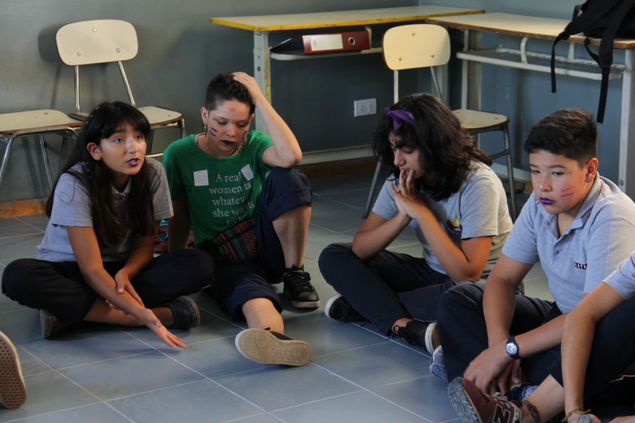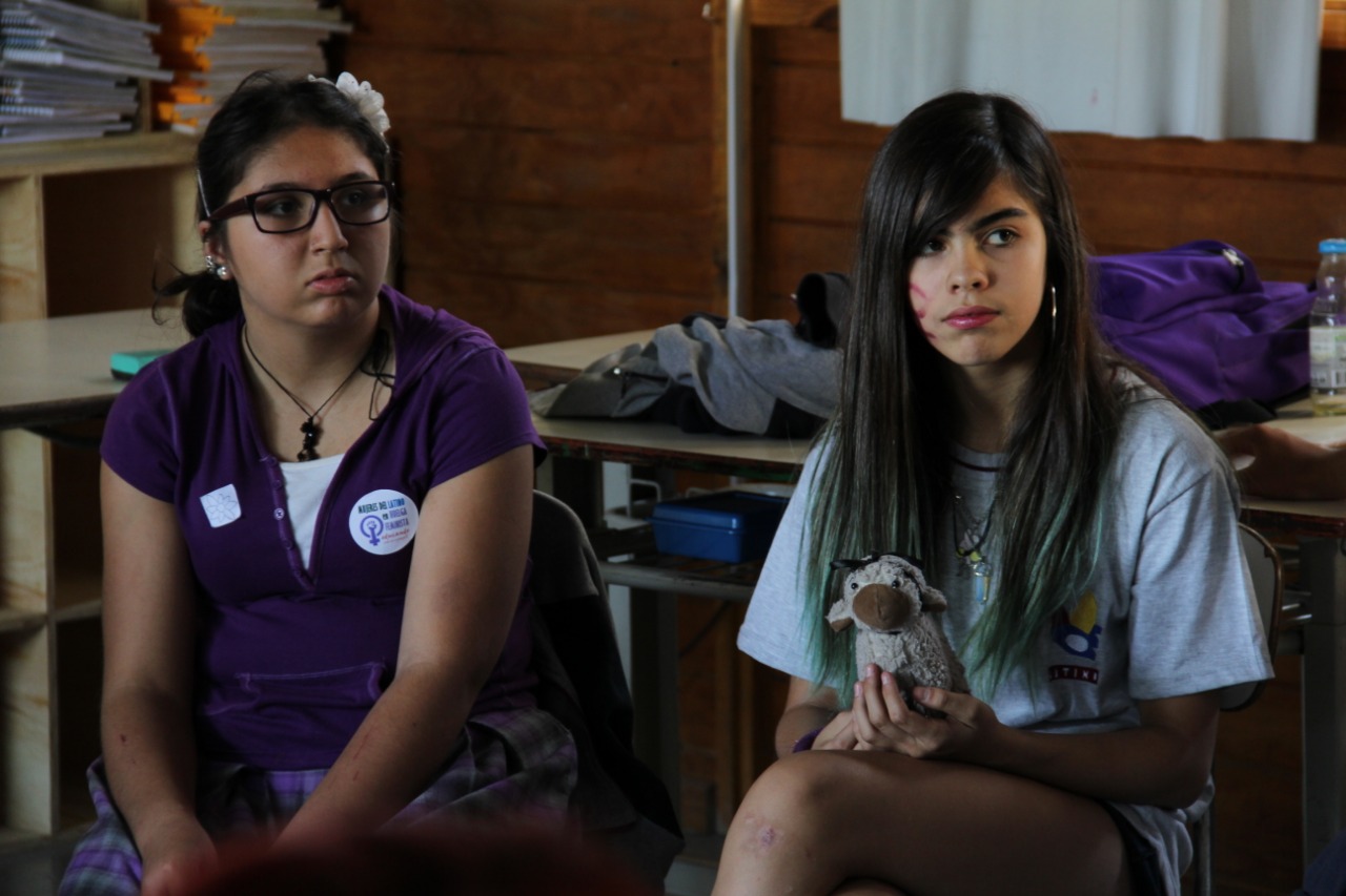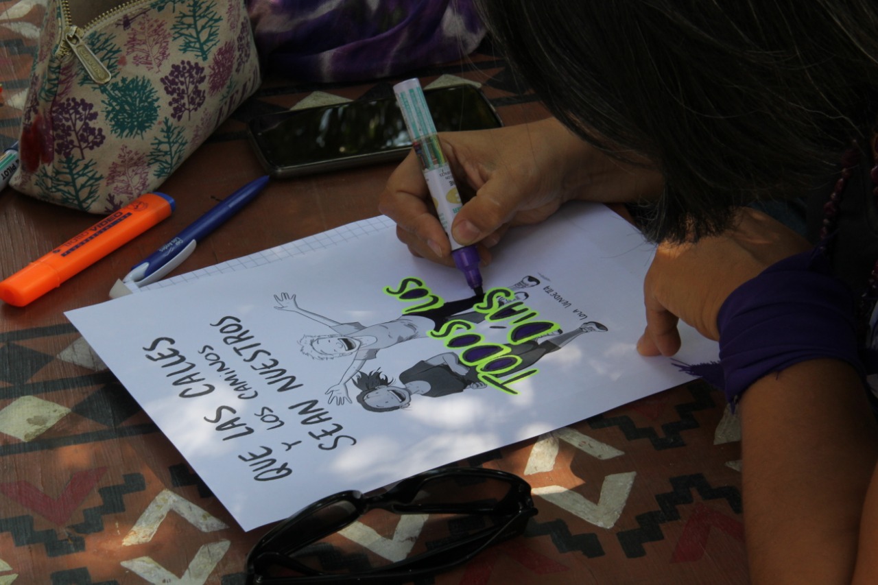 Mujeres Latinas en huelga feminista✊💜Marchan mamás, niñas y jóvenes estudiantes. Jornada de reflexión y discusión Jaqi.
